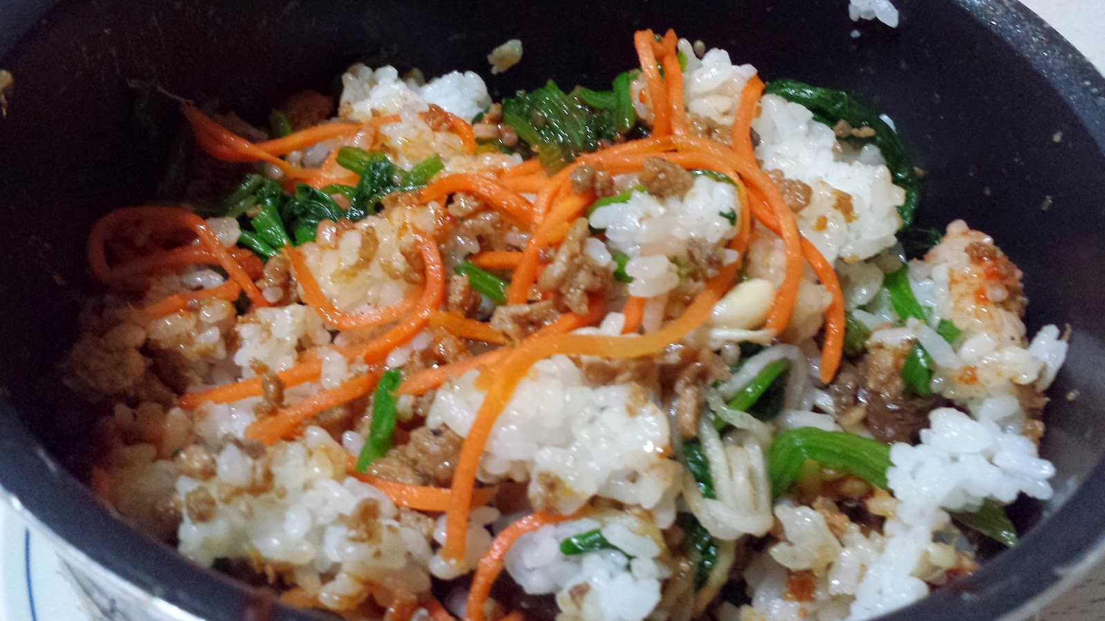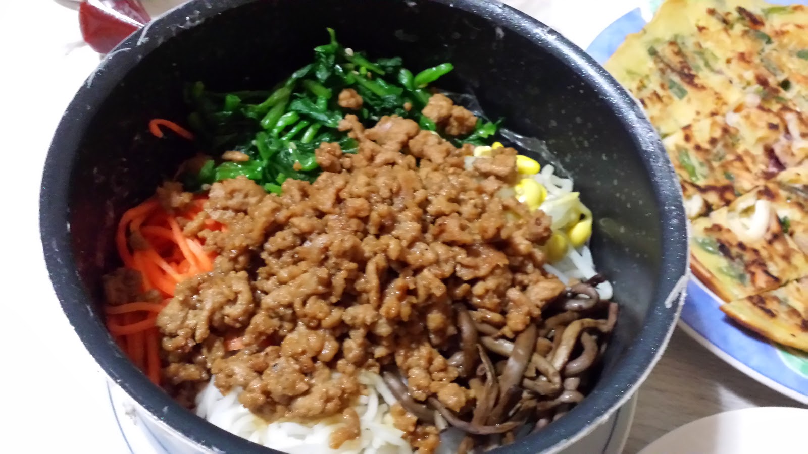 まず、鍋焼きピビンバ(石鍋がないので、なんちゃって石焼風に(笑))