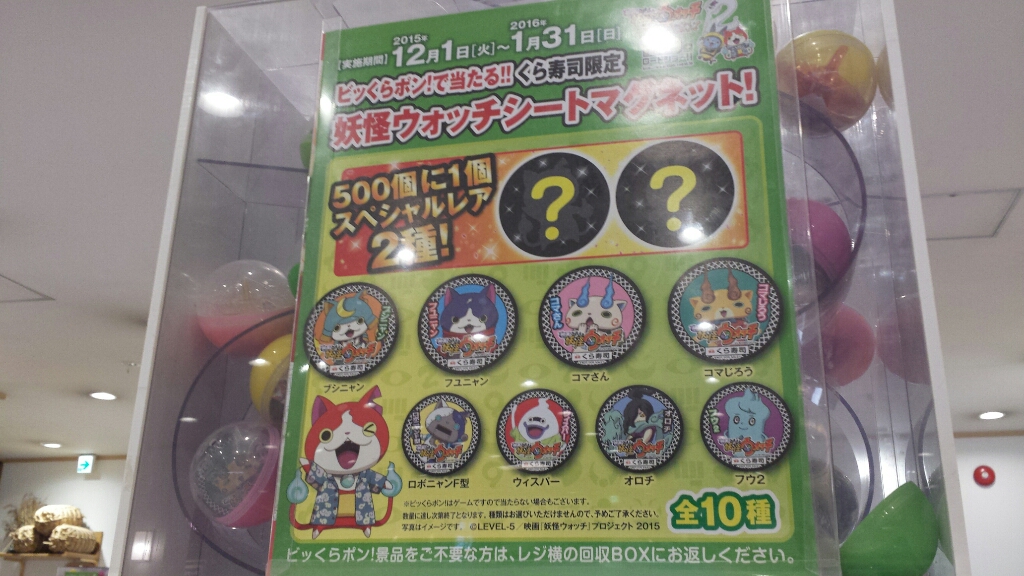 くら寿司限定の、『妖怪ウォッチ』のシート・マグネットを子供にせがまれ、行ってまいりました。