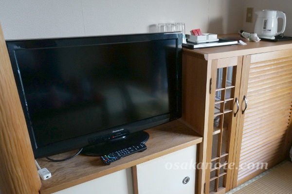 テレビはパナソニックのビエラ、大きさは正確には分からないけど、このタイプのお部屋には、必ず32型以上の液晶テレビが配置されているそうです。