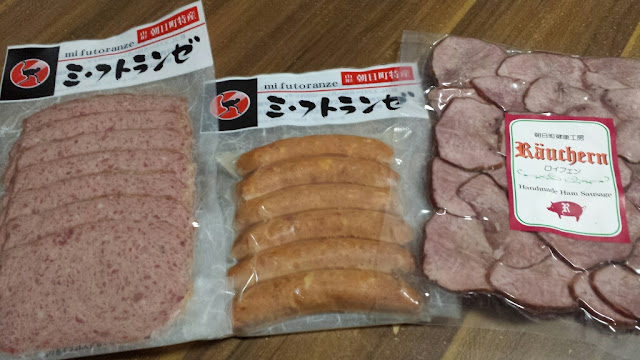 今回いただいたくダチョウ肉加工品は、『朝日町健康工房ロイフェン』というお店から発売されている、『ミ・フトランゼ』というブランドから、『アップル路鳥フライシュケーゼ100』 と『韋駄天ウインナー』。