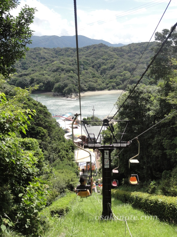 イルカ関係の見物が終わったら、有料のリフトに乗って、アシカのショーを見るため、イルカ島の山の頂上へ(徒歩での登山も可能)。