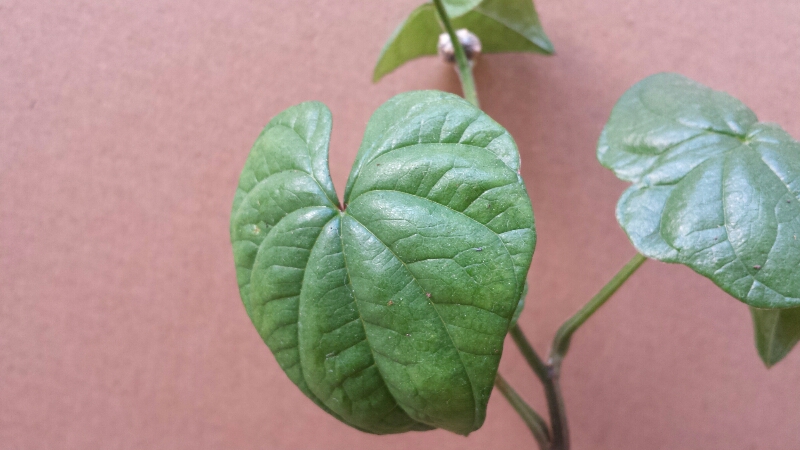 うちの水差しに挿しているものは、葉っぱの形が丸くてハート形、そして葉の生え方が『互生』であることから、まずは『ヤマノイモ』が除外されました。