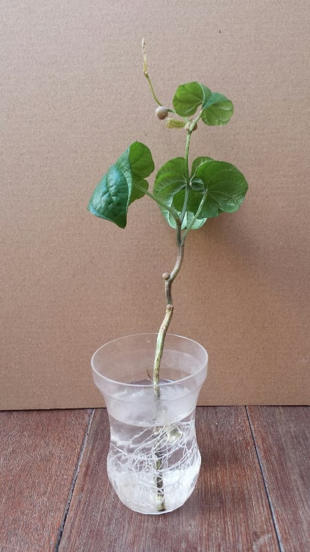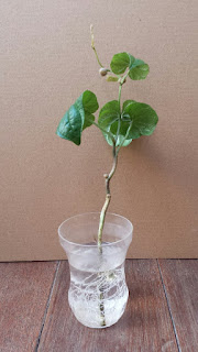 しかも、ちぎった葉と茎をゼリーの空きカップに水挿していたら、なんと根がでてきてしまい、実のようなものを付けるようになり、ますます捨てられなくなってしまいました。