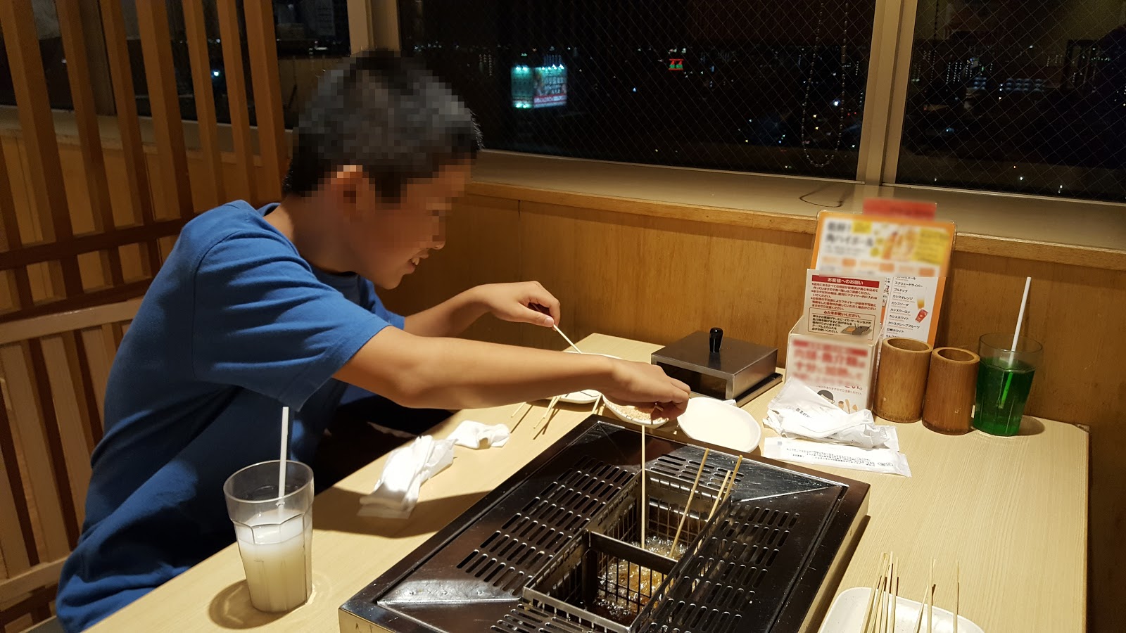 お食事は、チビの大好きな、某・自分で揚げて食べる串揚げ屋さん。