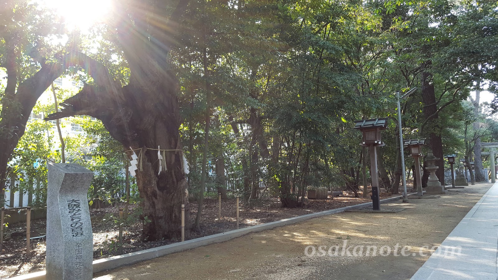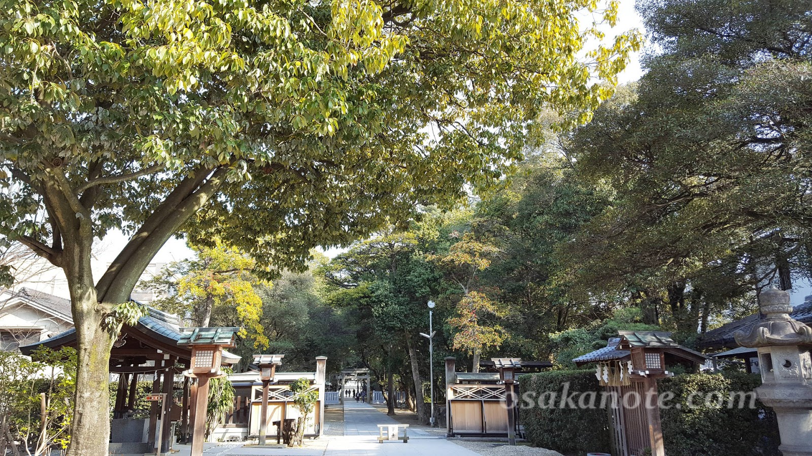 木々の間から木漏れ日が降り注ぐ、この長く趣きのある参道は、『大阪みどりの百選』にも選ばれています。