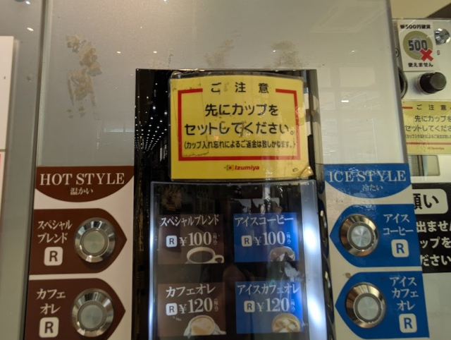 先に紙コップを入れてからボタンを押さないといけないのに、暑くて脳が沸騰していたからか、うっかり紙コップをいれないままアイスコーヒーボタンを押してしまい…。