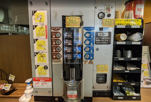 写真はお気に入りのカフェスペースで、UCCのおいしいコーヒーが120円でいただける場所なのですが、先日、ショックなことがw