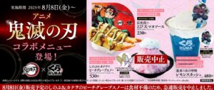 私的に一番楽しみにしていた『義勇の水の呼吸 レモンスカッシュ』が、売り切れなのかメニューにありませんでした。