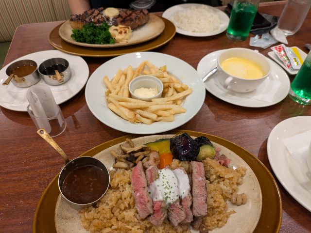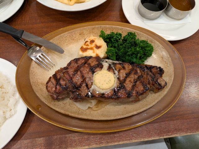 ただ、チビが「せっかく難波まで行ったのにぃ~」とご機嫌ななめになってしまって、仕方なく大きなステーキを注文することを許可しましたw