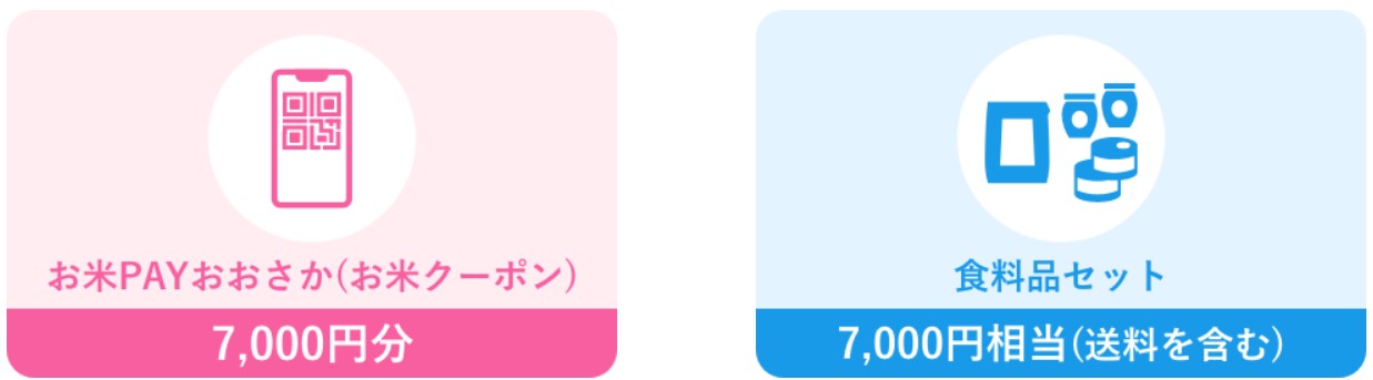 ちなみに申請者に配られるのは、7000円分のお米クーポンか、7000円相当の食料品セットです。