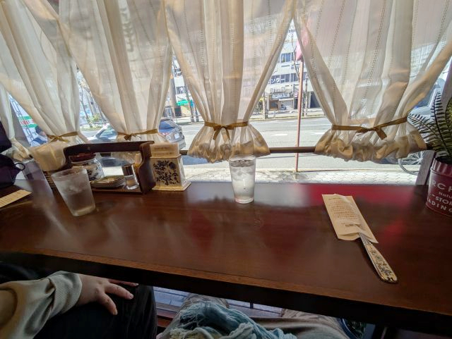 私達は2人席の窓際カウンターに座りました。